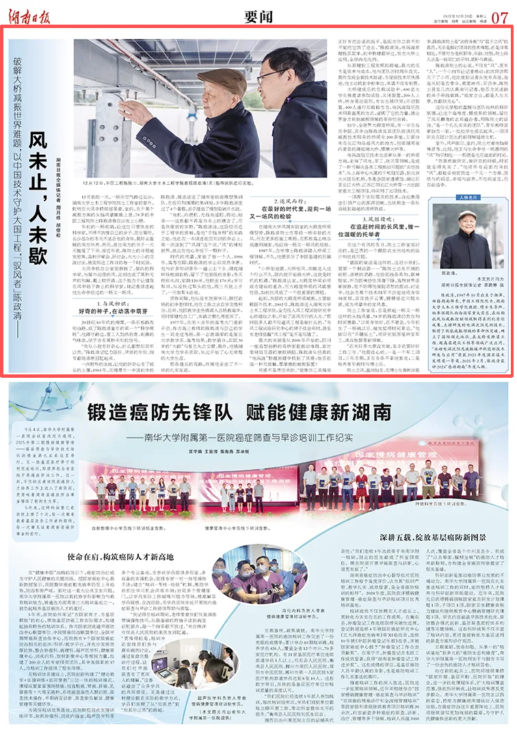 陈政清,1947年10月出生于湘潭,祖籍湖南邵东,中国工程院院士,湖南大学土木工程学院教授、博士生导师。他率领团队面向国家重大需求,在结构抗风与减振控制领域取得系列化原创成果。主持研发的电涡流阻尼新技术,取得了耗能减振领域的革命性突破,确立了国际领先地位,在大跨度桥梁工程、超高层建筑工程等领域广泛应用。“永磁电涡流阻尼减振缓冲耗能新技术研发与应用”荣获2023年度国家技术发明奖一等奖。2025年2月,陈政清获评2024“感动湖南”年度人物。