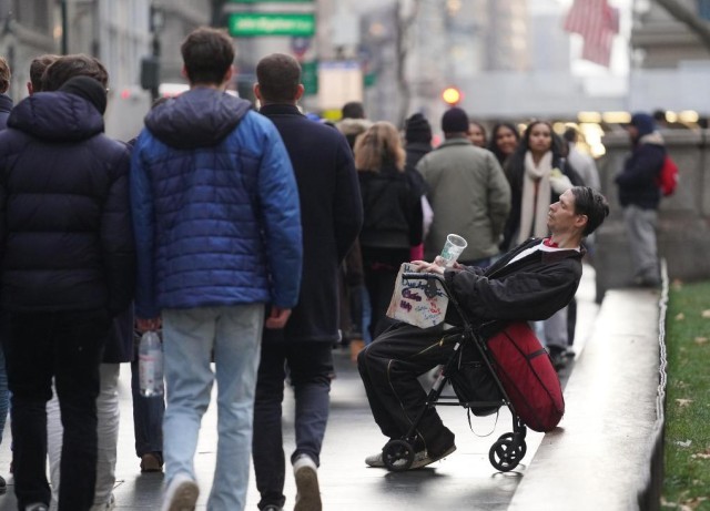 纽约的圣诞灯光照亮了第五大道橱窗里的奢华,却照不亮几条街外领取免费餐食的长长队伍。33岁的扎卡里·布朗对记者说,今年排队领餐的人中出现不少仍有工作的群体,“不只是流落街头者,很多人其实有收入,但已撑不住了”。