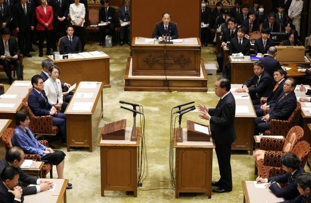 日本立宪民主党党首野田佳彦(右)26日在国会党首辩论中质问高市早苗 图:环球网援引日媒